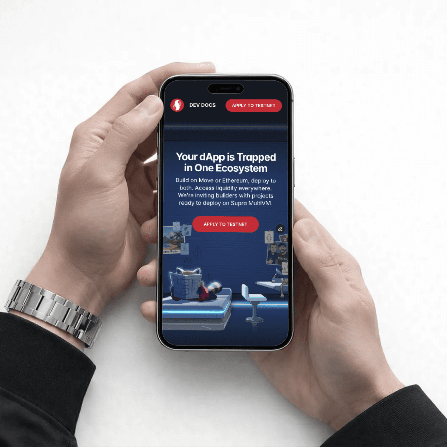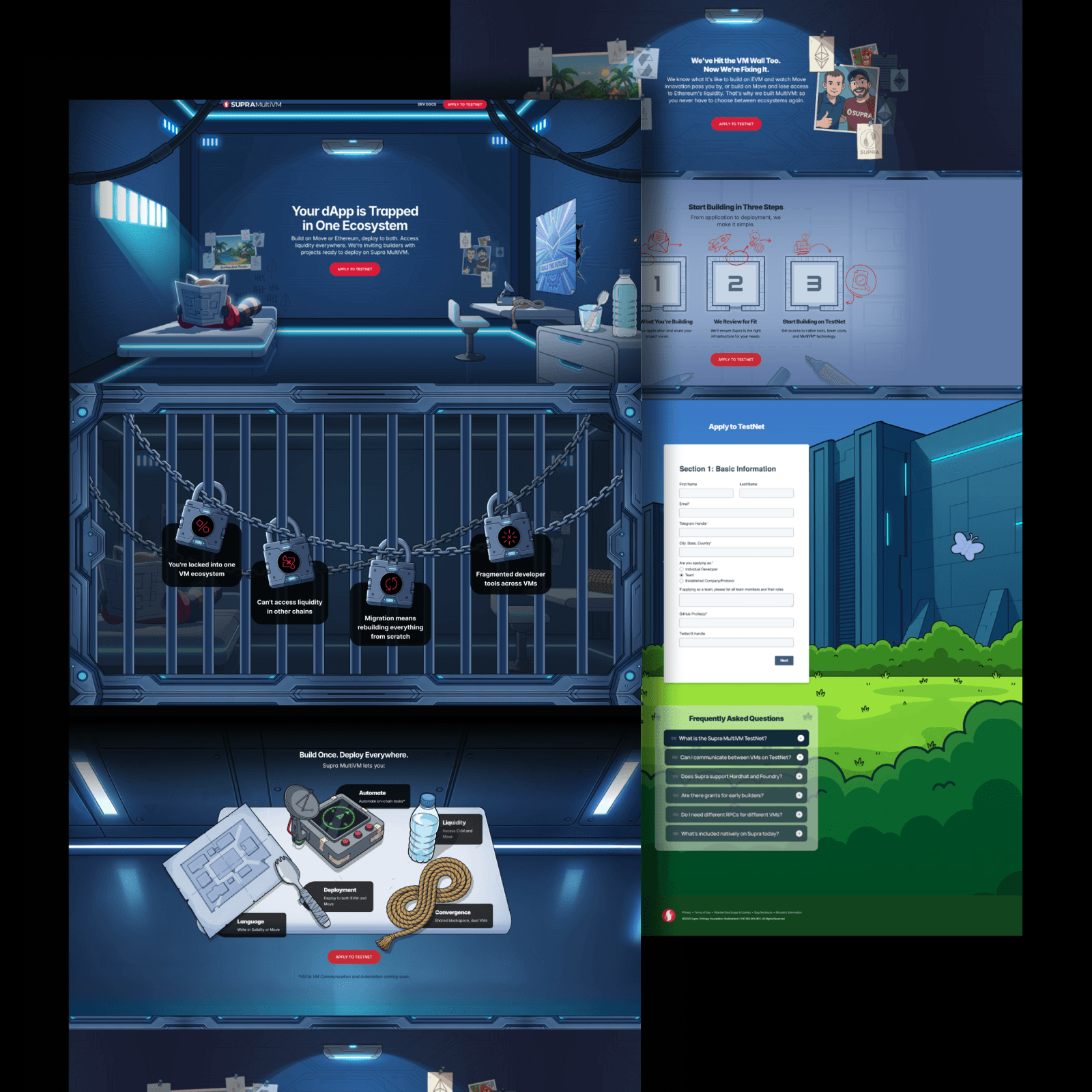 Supra MultiVM is a story-driven product landing page that translates a complex technical concept into a clear, engaging visual experience accessible to both Web3-native and general users.